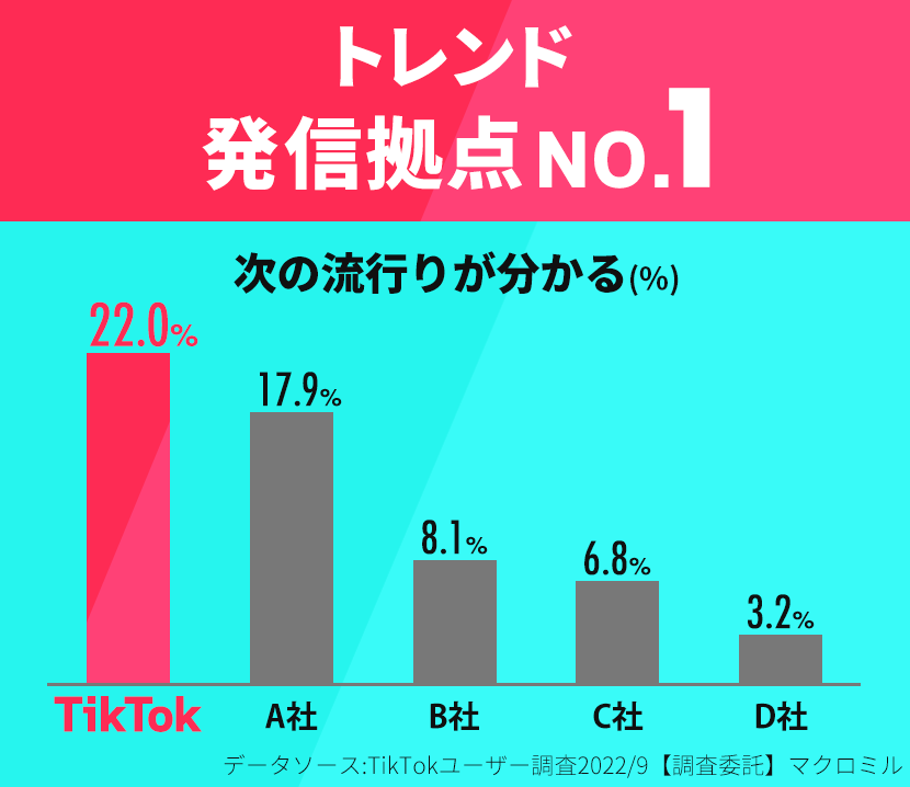 TikTokではいいねなどアクションをする人の割合が他プラットフォームの4.7倍と熱狂的なユーザーが多いのが特徴です。※2